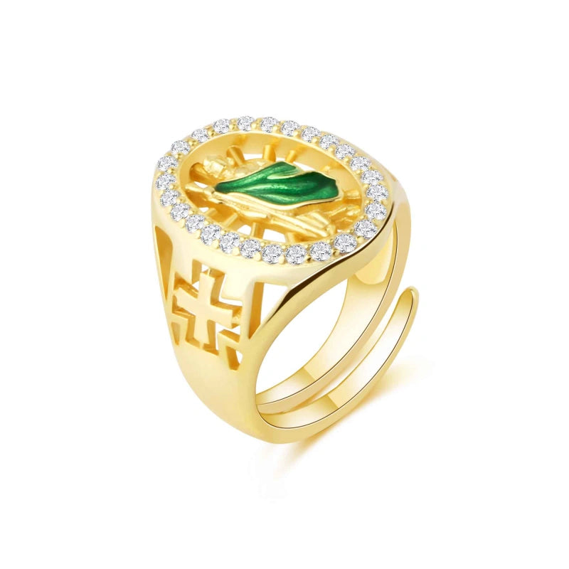 925 Silver Yellow Green San Judas Tadeo CZ Ring