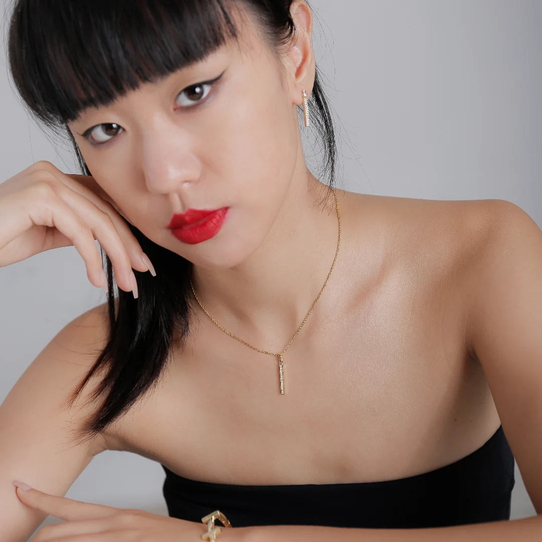 Vertical Pole Necklace The Comet Jewelry Set collection Designed by Tanin