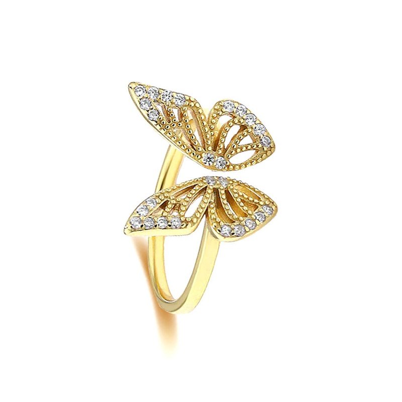 925 Sterling Silver Openwork Butterfly Toi et Moi Ring