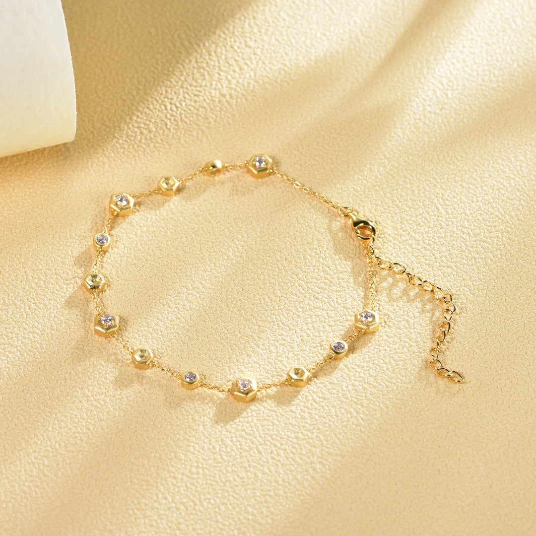 Honeycomb Honey Chain Bracelet preserves elegance as a jewelry-like accessory. The unique tiny honeybee & honeycomb pattern is very eye-catching and shows your fashion and amazing taste.