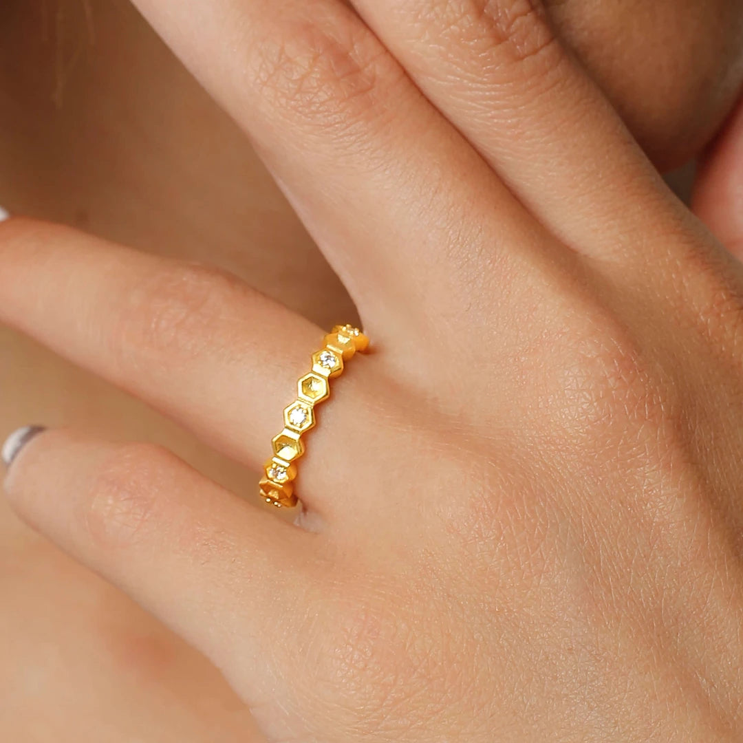 Honeycomb With Honey Ring preserves their elegance as jewelry-like accessories. The unique tiny honeybee & honeycomb pattern is very eye-catching and shows your fashion and amazing taste.